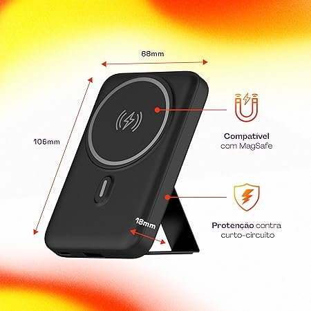 Leve e portátil, o acessório pesa cerca de 45g e possui apenas 6 mm de espessura, sendo excelente para levar na mochila, no bolso ou deixar fixo na mesa. Além do uso em casa, ele é ótimo para viagens ou para quem precisa manter o celular carregando sem se preocupar com fios soltos. Seu sistema de segurança integrado protege contra superaquecimento, sobrecarga e curto-circuito, aumentando a durabilidade tanto do carregador quanto do celular.