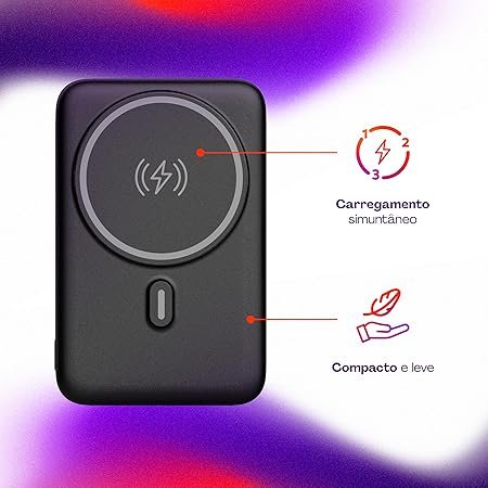 Compacto e com design premium na cor preta, o modelo equilibra potência e estilo. É uma ótima escolha para quem valoriza versatilidade no dia a dia e precisa de uma bateria externa confiável, sem abrir mão da estética e da funcionalidade.