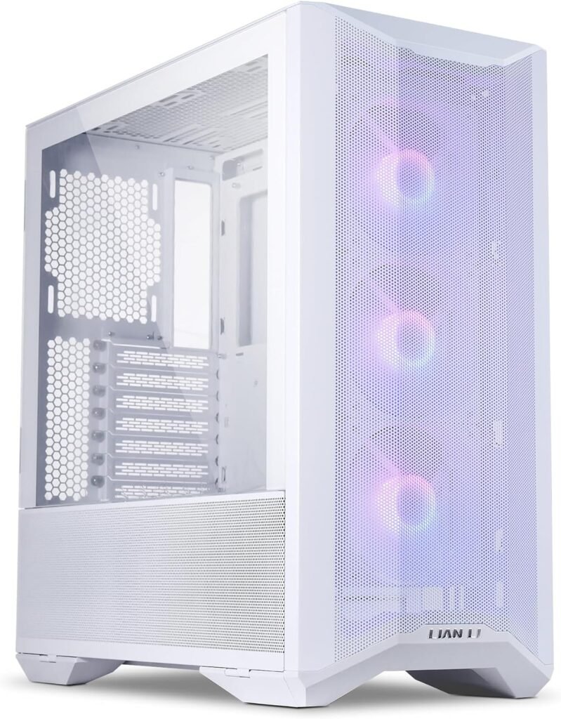 O Lancool II Mesh C, da Lian Li, é um dos gabinetes com melhor construção e beleza que temos em circulação atualmente. Por ser um modelo de gabinete gamer, ele conta com iluminação RGB. Os efeitos de iluminação das 3 ventoinhas ARGB incluídas podem ser totalmente controlados através dos botões C e M localizados na parte frontal superior. Assim, você pode alternar em 8 configurações de cores diferentes apenas apertando um botão.