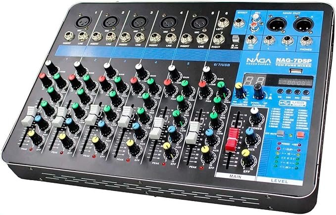 O modelo NAG-7DSP da NAGA é, sem dúvida, a proposta da marca para quem deseja uma mesa de som profissional para eventos ou gravações. Só para ilustrar, seu funcionamento digital torna o ajuste do som mais prático, com efeitos fáceis de controlar e uma rápida conexão com acessórios e outros dispositivos.