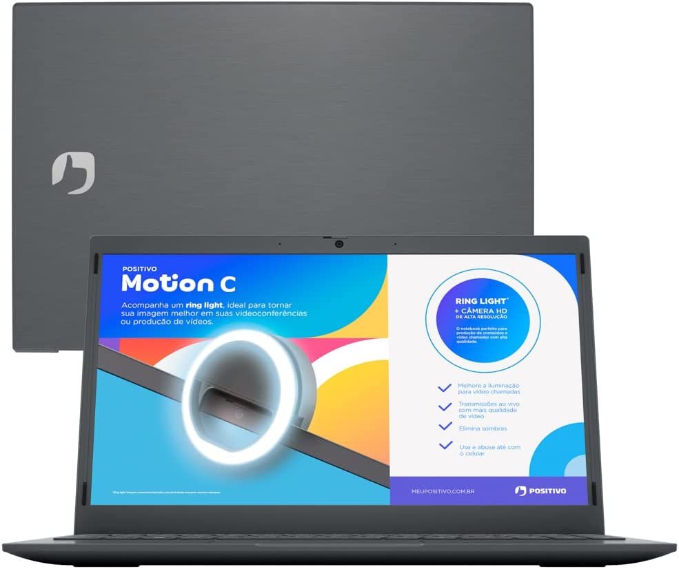 O notebook Positivo Motion C é uma ótima opção de custo-benefício para usar nos estudos e no dia a dia. A principal vantagem dele é sua espessura, de apenas 18,7mm, e peso de 1,4kg. Você consegue carregá-lo para qualquer lugar sem maiores problemas, além de ser extremamente econômico.