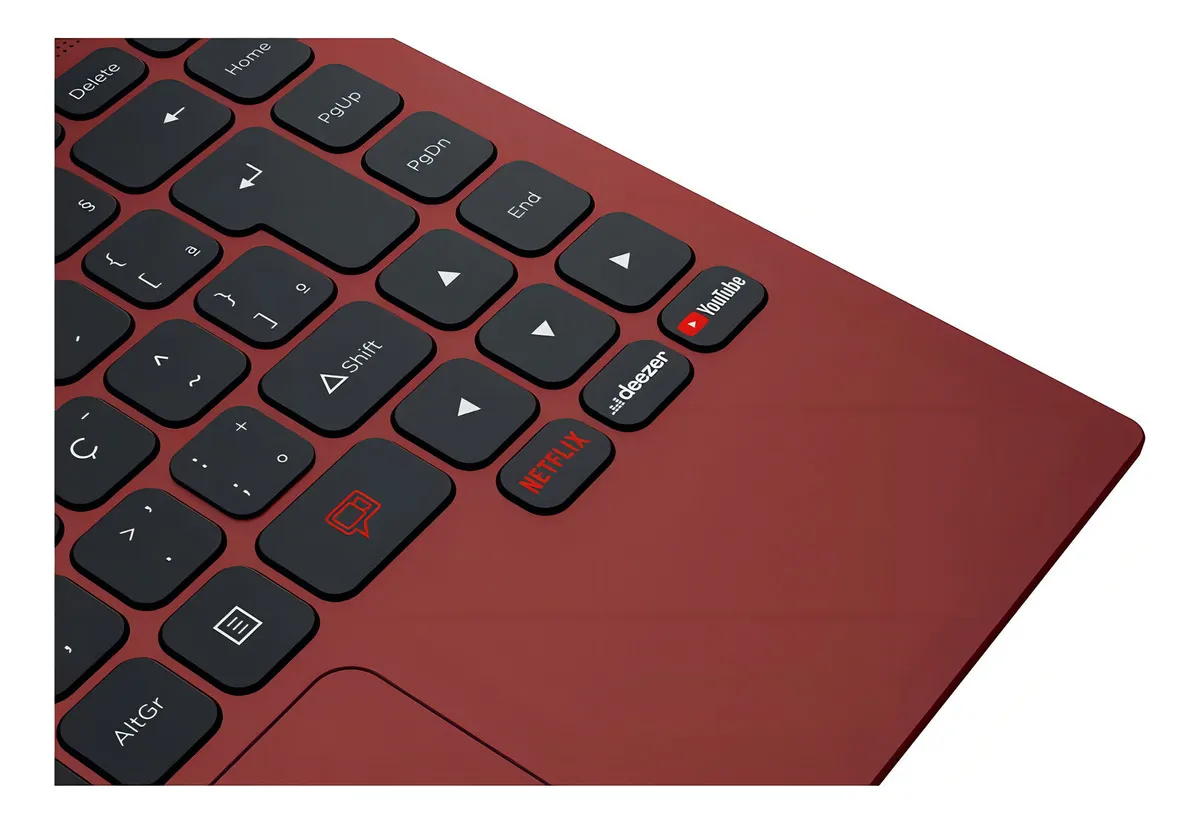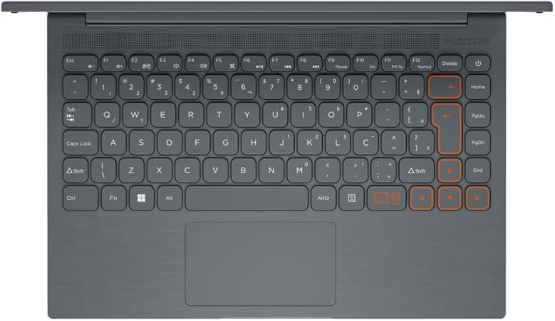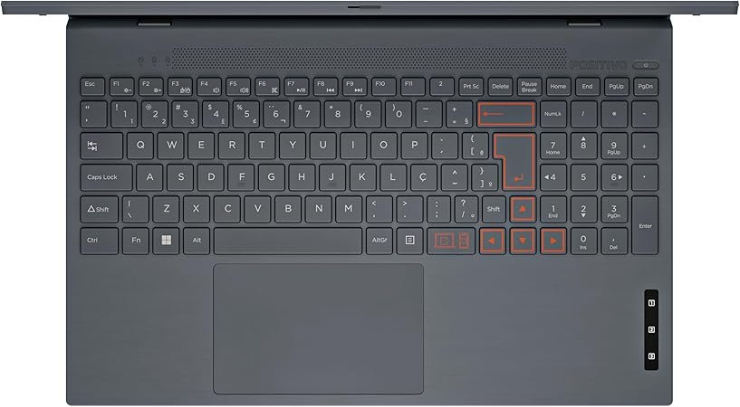 Como todo Positivo Motion, seu design engloba praticidade, colocando o teclado numérico no grande touchpad, e para não ocorrer confusões, ele também possui um botão para desativá-lo caso precise. Isso junto aos botões de atalho para a Netflix, o YouTube e o Deezer.