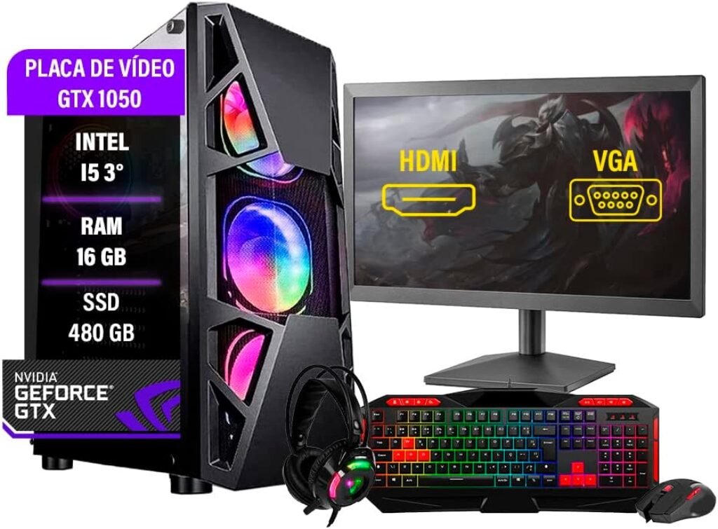 Para aqueles que querem investir em algo completo para jogar Fortnite, podem confiar no kit gamer da 3green. Aqui você recebe não somente um gabinete gamer, mas também um mousepad e mouse com ajuste de DPI, teclado semi-mecânico, headset e um monitor 24 polegadas, tudo incluso no pacote sem acréscimo de dinheiro. É ideal para quem busca economia.