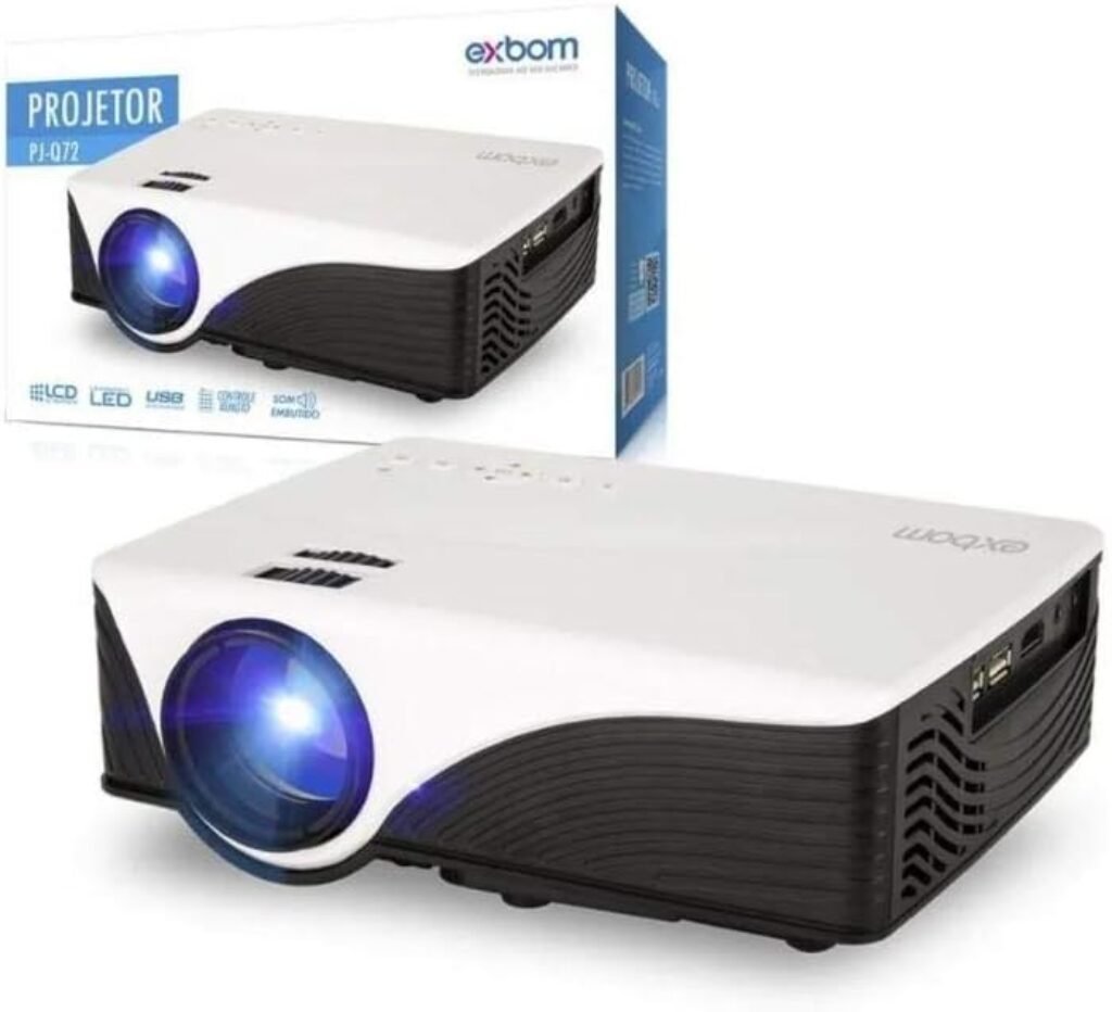 Para aqueles que querem um projetor simples para o dia a dia, o PJ-Q72 da Exbom pode ser uma boa opção. Ele traz ao usuário uma tela de até 130 polegadas, sendo também um dos modelos mais baratos em circulação. Você pode ter um cinema em casa por um valor muito menor, com o projetor se adequando entre 1 a 4 metros para projeção.