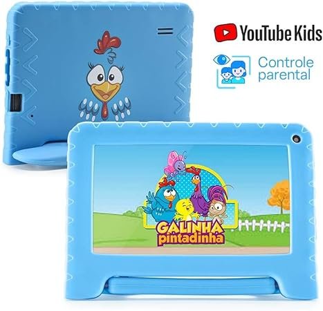 Isso é um tablet que é perfeito para quem ama Galinha Pintadinha o NB419 vem com 4GB de RAM (com 2GB de expansão virtual), Android 13 Go Edition é uma experiência pensada especialmente para crianças. Além disso, ele contém um design colorido e com uma capa protetora anti quedas, o que reforça a identidade do produto.