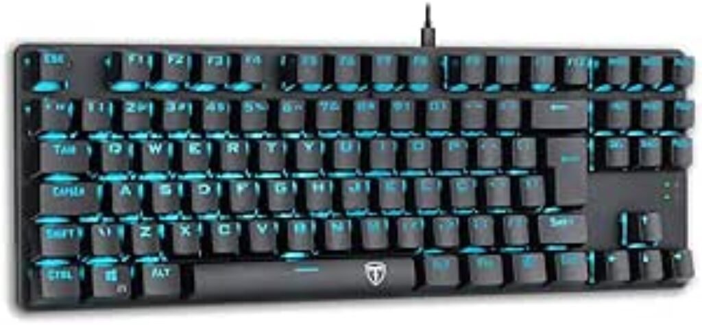 Se o que você procura é um teclado gamer de entrada com qualidade e cheio de estilo, o T-Dagger é a escolha certeira. Isso acontece em virtude de dois fatores: em primeiro lugar, os Switches Blue do modelo são perfeitos para quem busca um bom retorno tátil. Além disso, o som de acionamento das teclas é audível, embora se mantenha suave.