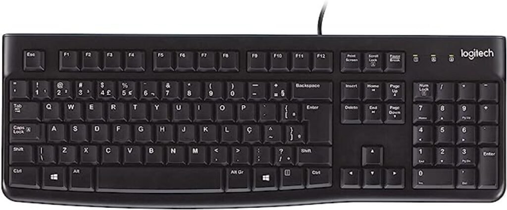 Se o que você procura é um teclado completo para o trabalho ou dia a dia pelo menor custo, o K120 da Logitech é o mais indicado. Isso acontece em virtude de seu formato ABNT2, que oferece não só uma gama de teclas de terceira função como também um teclado numérico. Isso é perfeito para quem gosta de praticidade e lida com textos e planilhas diariamente.