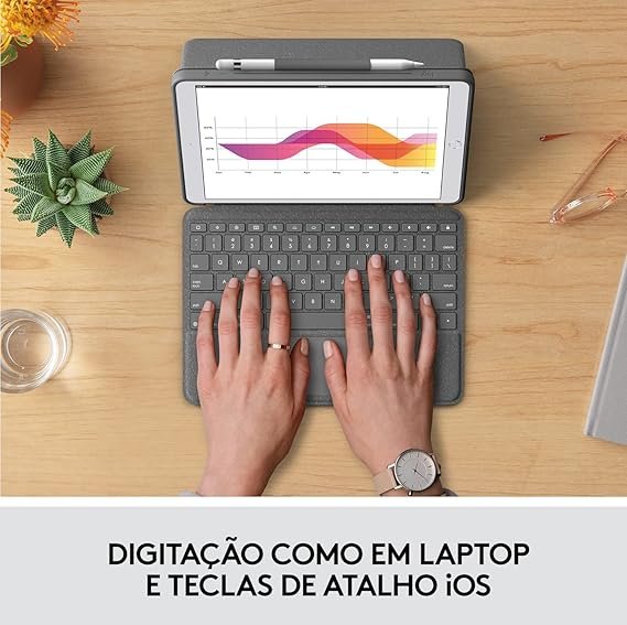 Contando com uma ótima compatibilidade e recursos, o teclado de iPad da Logitech é indicado para quem deseja um modelo versátil. Afinal, sua conexão sem fio é uma vantagem para quem precisa de mais espaço para se mover, além de facilitar o uso e o transporte do acessório.