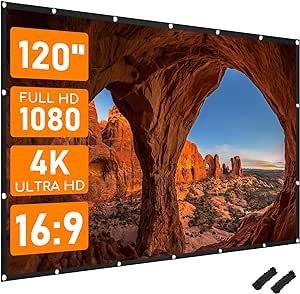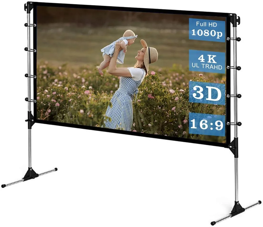 E para complementar ainda mais essa qualidade, o modelo tem 100 polegadas na diagonal, ângulo de visão amplo de 160°, proporção de 16:9, você pode desfrutar de uma visão clara de vários pontos de vista e de uma visão widescreen, que é ideal para imagens 3D, 1080P, 4K e Full HD. Essa tela de projeção antirrugas é feita de tecido de poliéster de alta qualidade, a tela é macia e suave, sem marcas, sem rugas depois de dobrada, lavável, durável, oferece cores mais vivas e imagens mais nítidas.