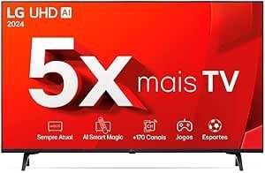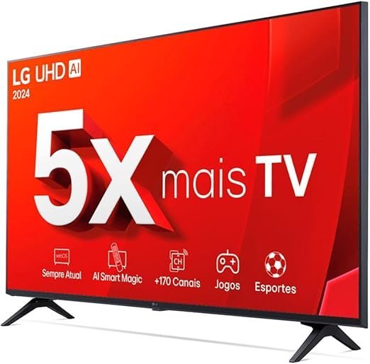 A LG UHD 43″ 43UT8000 é uma excelente opção para quem busca uma smart TV compacta, mas com uma excelente qualidade de imagem e som. Com a resolução 4K UHD e o Processador α5 Ger7 AI, ela oferece imagens claras, com ótimo contraste e detalhes. O Otimizador de Jogos presente no modelo é ideal para quem adora jogar, pois ajusta automaticamente as configurações de imagem para uma performance otimizada.